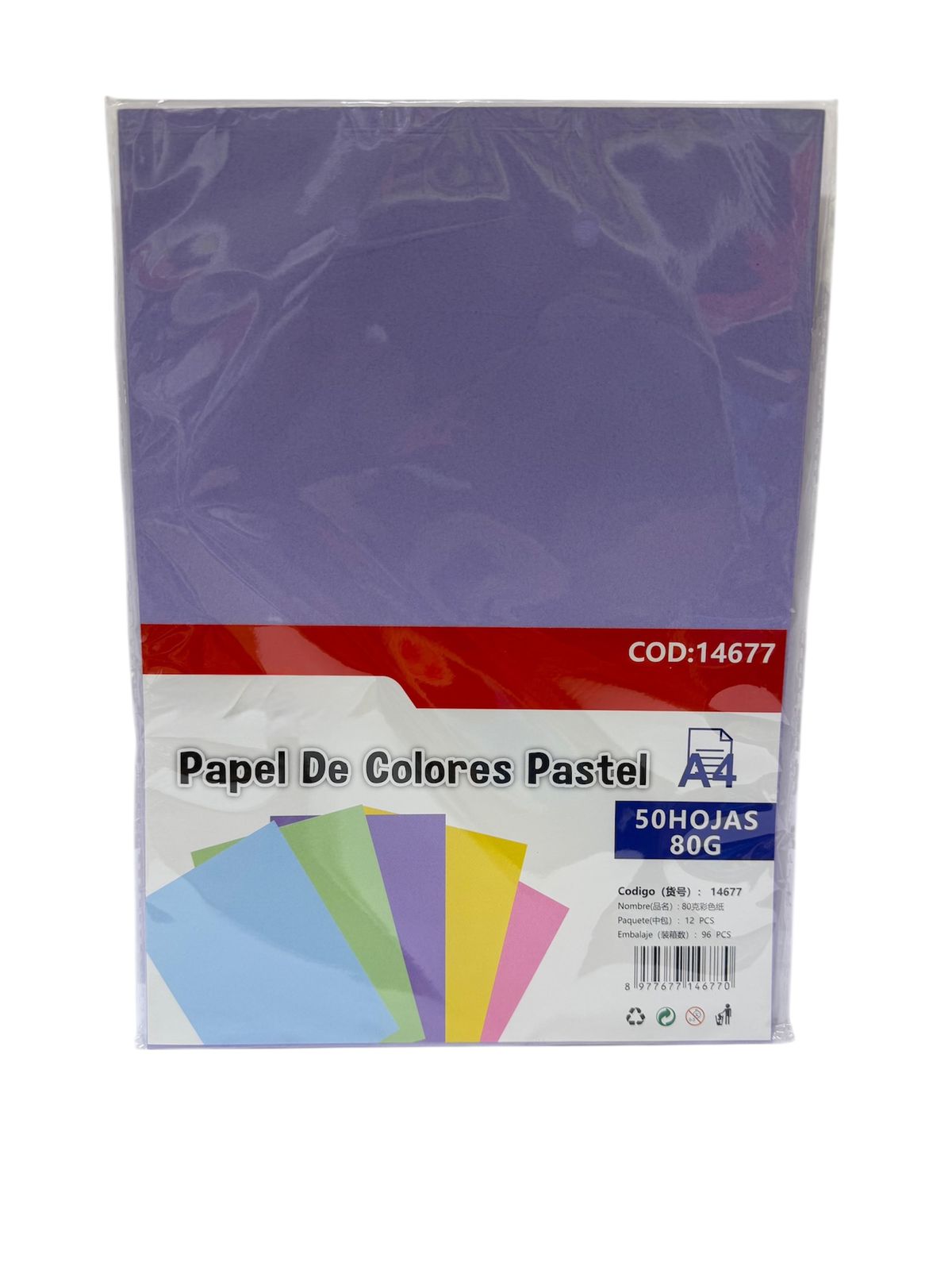 Papel de Colores Pasteles 50 hjs – 80 grs.