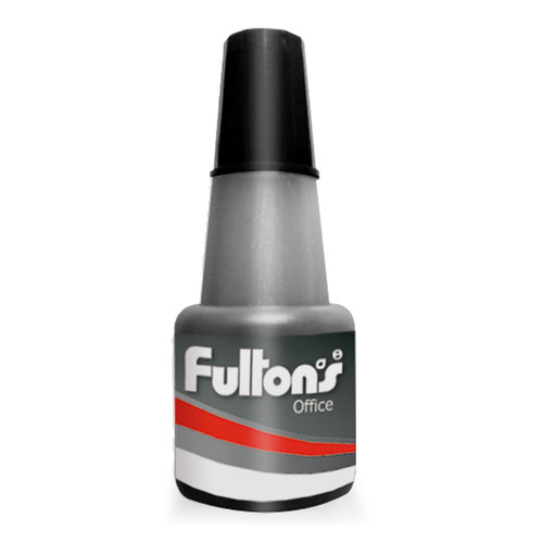 La tinta para sello de 24 ml en color negro de Fultons es ideal para recargar tampones de manera sencilla.